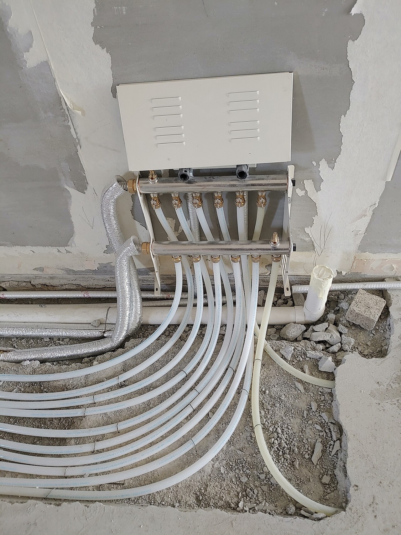 이것과 같이 한 설비 작업은 분배기 이동... 그리고 부엌 다용도실 바닥 난방위한 액셀깔기..