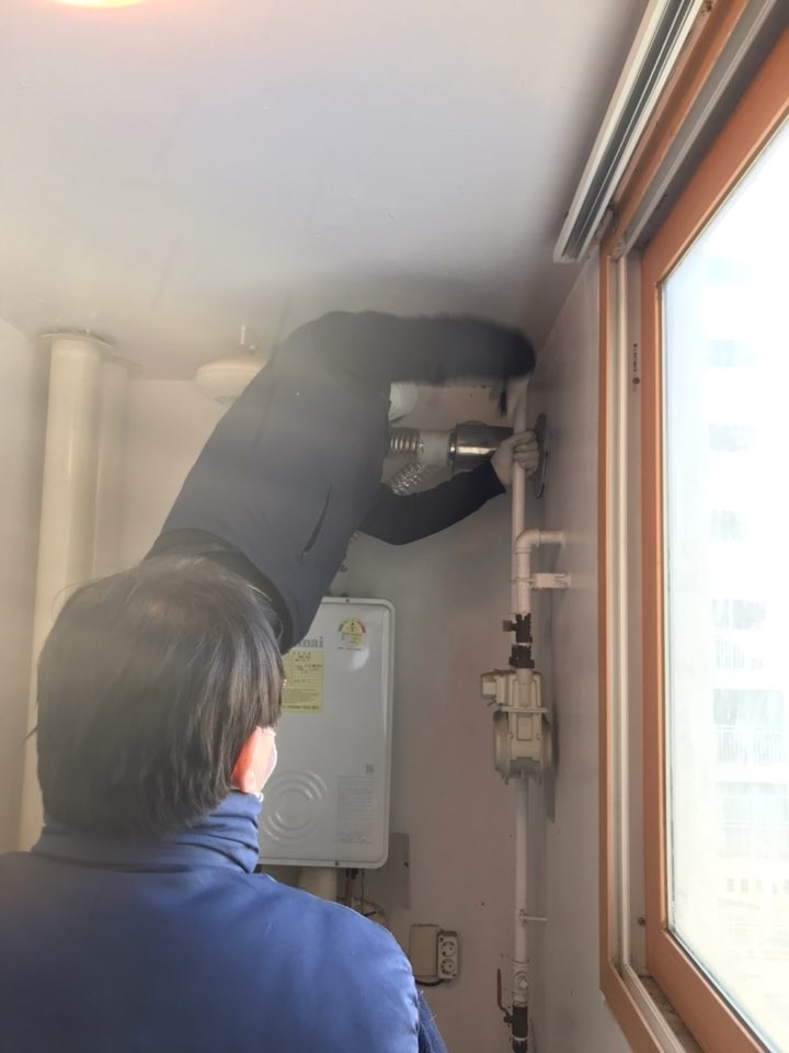 인덕션을 할거라서라서요. 다용도실 쪽 배관까지 깨끗이 정리해서 없앴습니다. 보일러 옆까지.