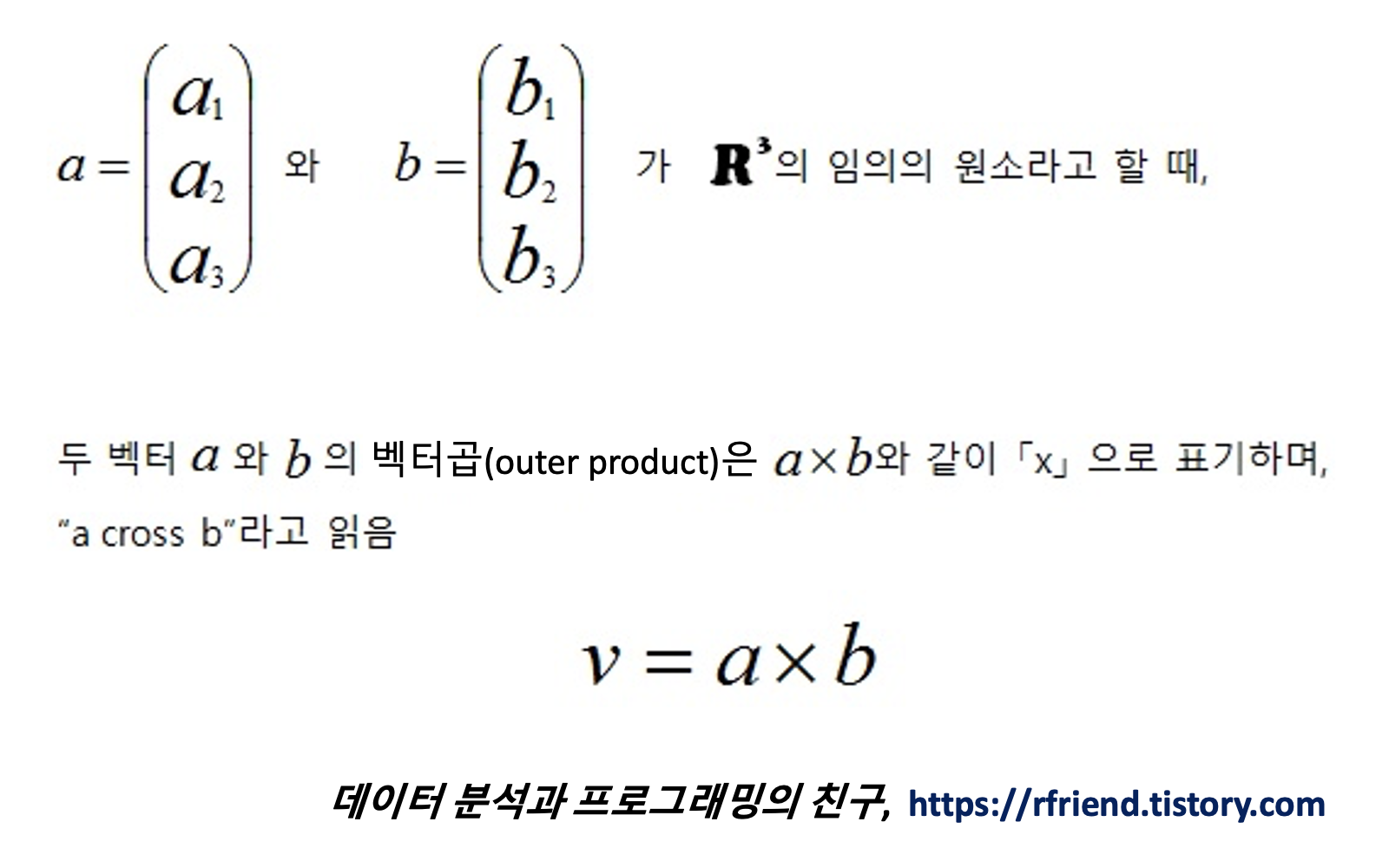 R (7) 벡터의 곱 - [2] 벡터곱 (cross product, vector product), 외적(outer product)