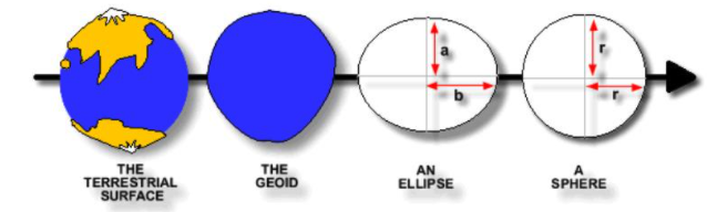 [ 지구의 표면, 지오이드(GEOID), 타원(Ellipse), and 구(Sphere) ]