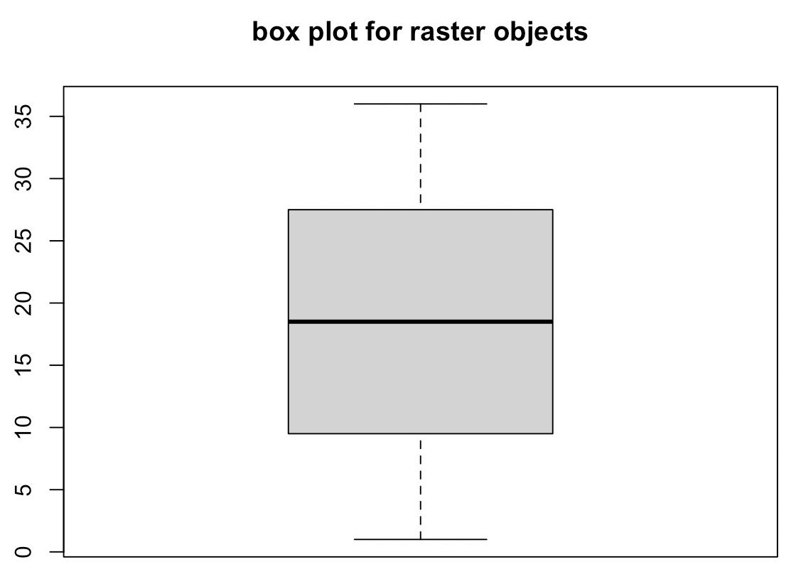 레스터 객체의 픽셀 속성값에 대해 boxplot() 함수를 사용하면 상자그림(box plot for raster objects)을 그릴 수 있습니다.