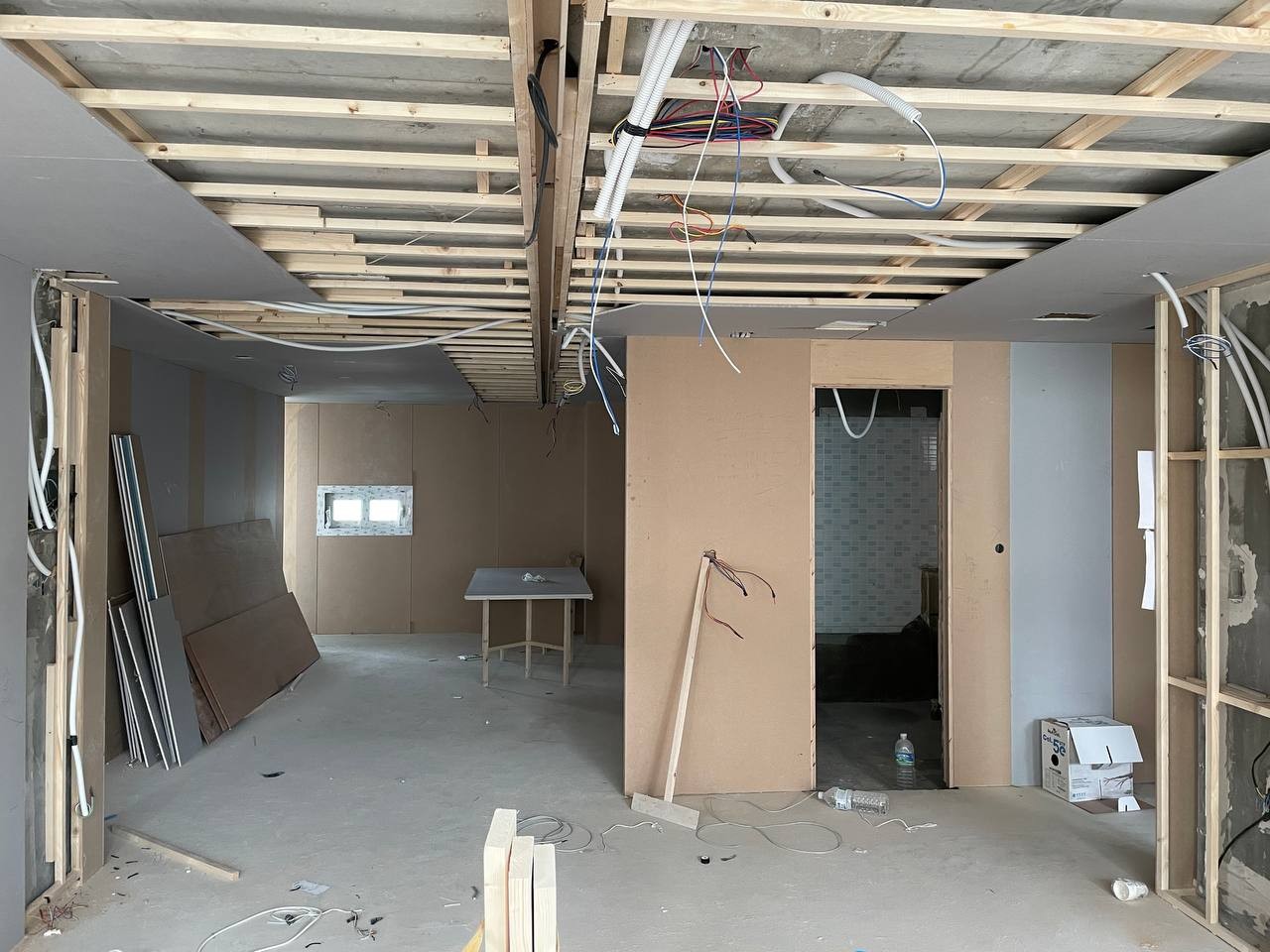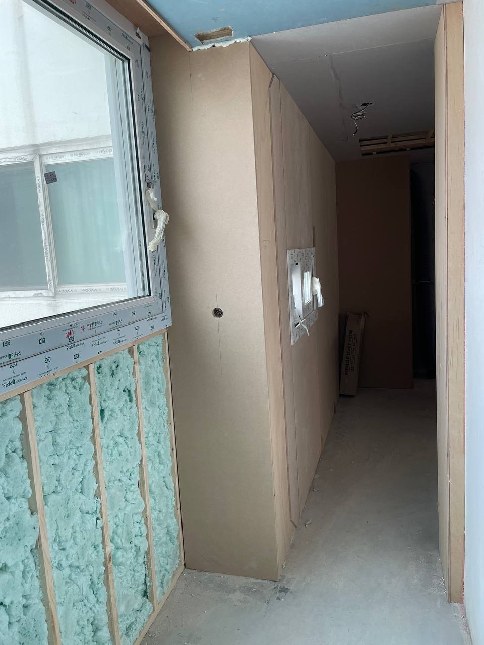 미장이 되고, 그 위에 석고보드 덮었어요.