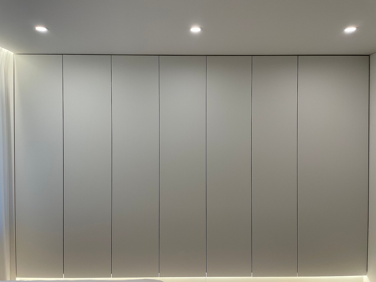 붙박이장 사진입니다. 안방도 목공을 해서 수평을 정확히 맞췄어요. 바닥에 세탁기 배관이 지나가기도 하고요.. 하단엔 LED 조명도 넣어주셨어요. 예쁜데 살짝 밝아서... 무드가 좀 덜 잡혀요 ㅎㅎ 커텐박스 LED 만으로도 충분할 듯요.