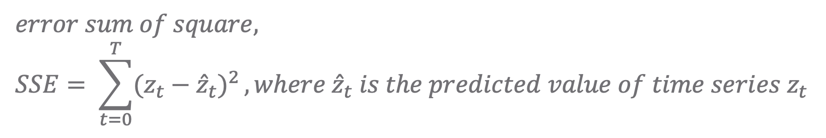 SST는 시계열 값에서 시계열의 전체 평균 값을 뺀 값으로, 시계열 예측 모델을 사용하지 않았을 때 (모든 모수들이 '0' 일 때) 의 오차 제곱 합입니다. 나중에 결정계수(R2), 수정결정계수(Adj. R2)를 계산할 때 사용됩니다. (SST 는 모델 성능 평가에서는 제외)