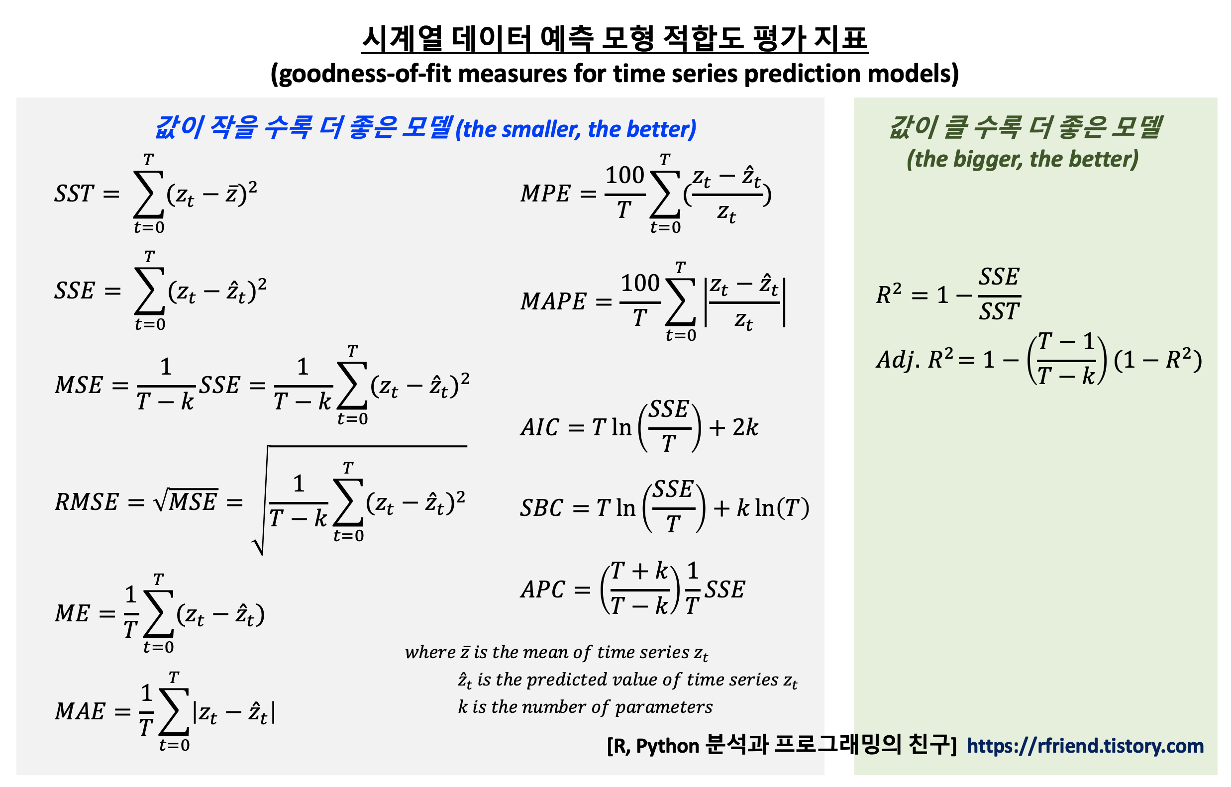 [ 시계열 데이터 예측 모형 적합도 평가 지표 (goodness-of-fit measures for time series prediction models) ]