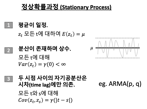 [ 정상시계열의 조건 (conditions for stationary time series)]