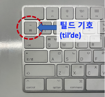 참고로, 틸드 기호(til'de) 기호는 키보드의 좌측 상단의 (~, ₩) 단추를 눌러주면 됩니다. 우측 중간의 작은 따옴표(') 아니예요. 조심하세요.