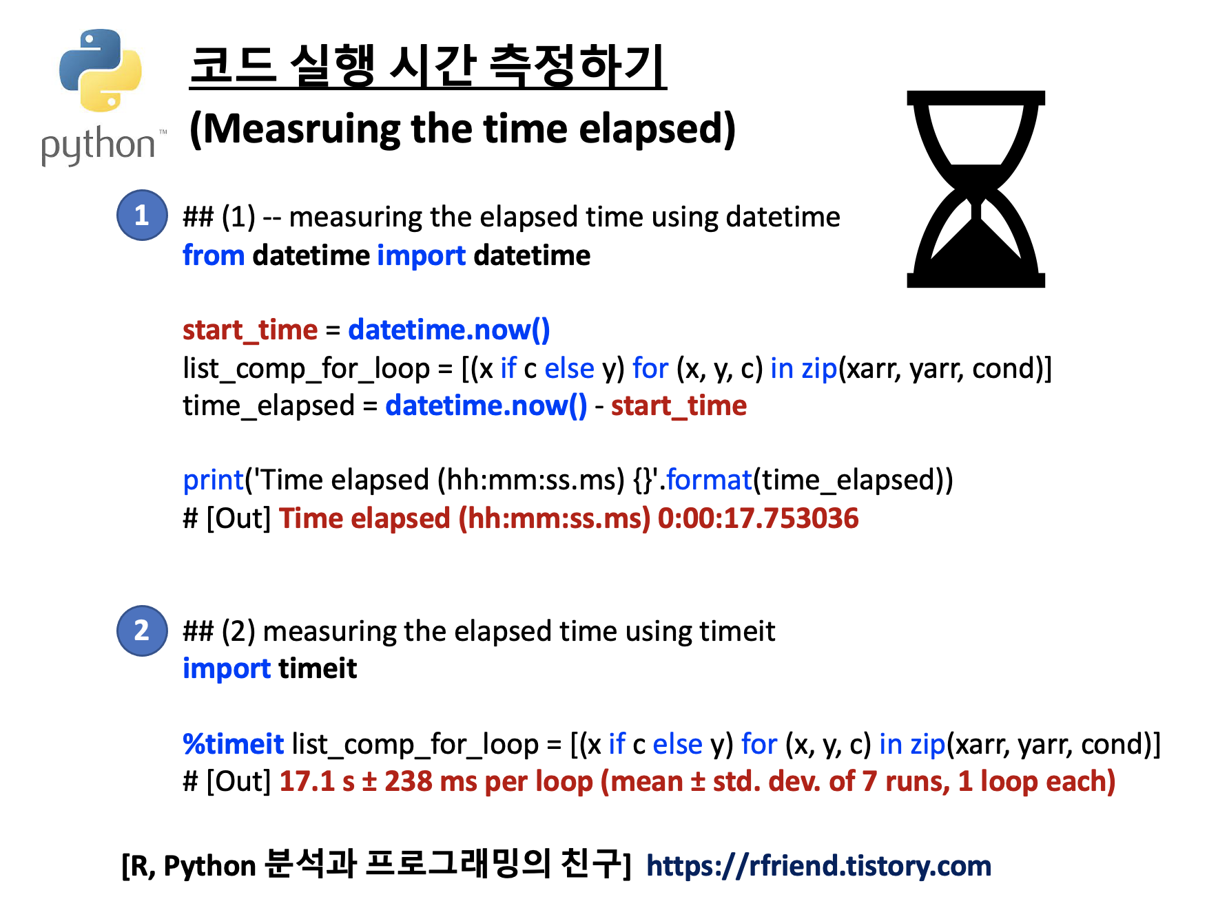 이번 포스팅에서는 Python에서 코드를 실행시켰을 때 소요된 시간을 측정하는 2가지 방법을 소개하겠습니다.