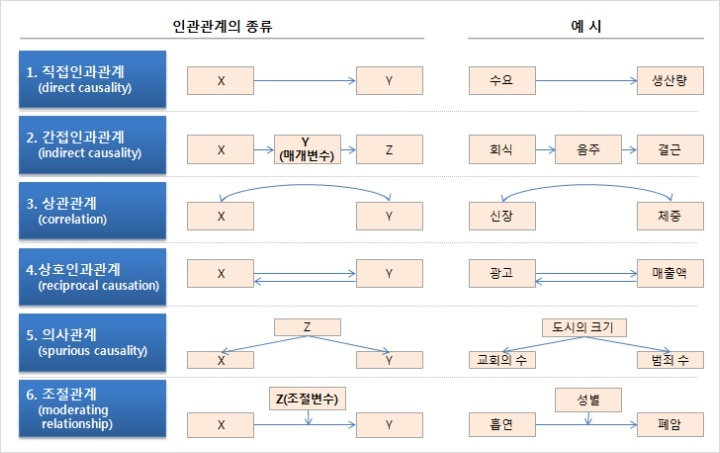 - 인과관계: 원인 변수의 변화가 결과 변수에 변화를 일으키는 특정한 방향성이 있습니다.