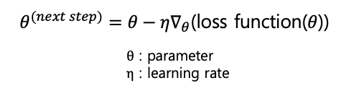 - Eta (η)는 학습율(the learning rate)로서, 학습율은 기계 학습 및 신경망 훈련에서 사용되는 하이퍼파라미터 중 하나로, 각 훈련 단계에서 모델의 가중치를 조정하는 정도를 나타냅니다. 즉, 학습율은 가중치 업데이트의 크기(step size)를 결정하는 매개변수입니다.