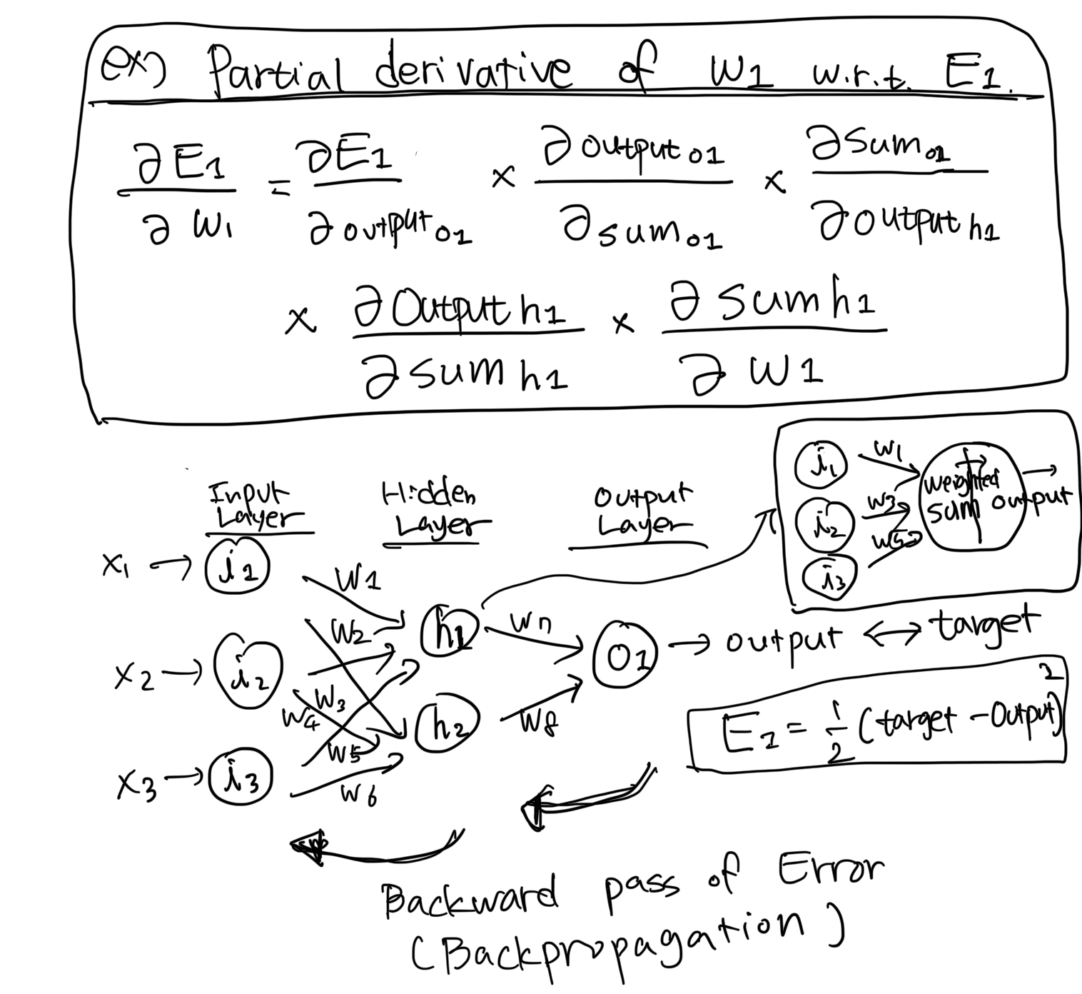 [ example: Partial Derivative of w1 with respect to E1 ]
