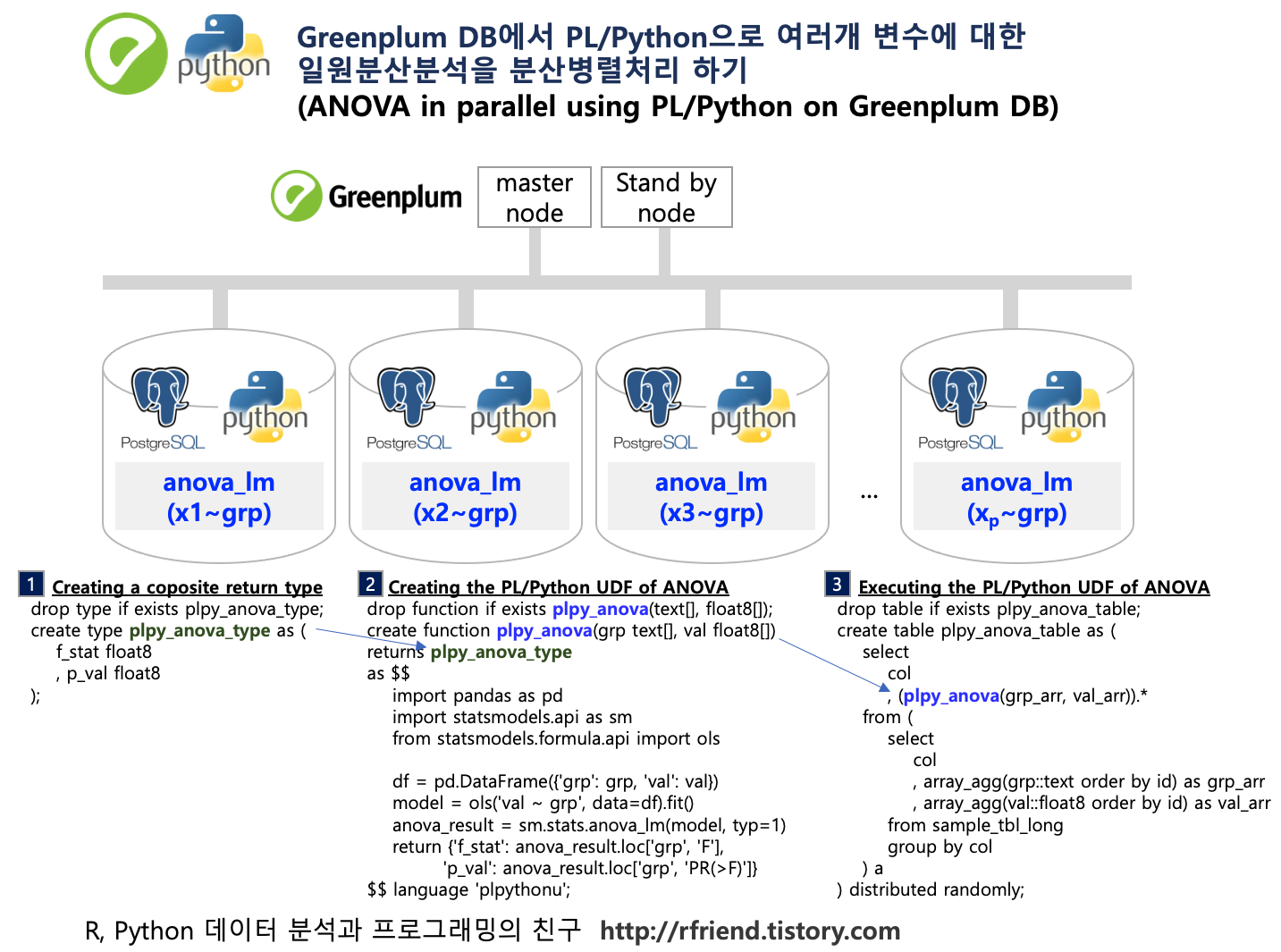 (5) 일원분산분석(one-way ANOVA) PL/Python 함수 분산병렬처리 실행