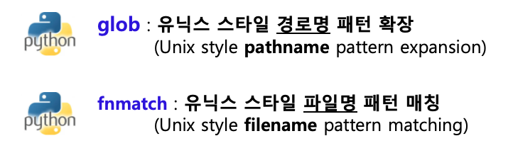 | [Python] 유닉스 스타일 경로명 패턴 확장 glob, 파일명 패턴 매칭 fnmatch (0) | 2023.04.02 |