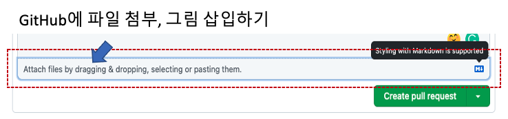 (3) 비교한 변경사항이 원하는 내용임을 확인하였으면 Pull request의 제목과 설명을 추가한 후에 ‘Create pull request’ 단추를 누릅니다.