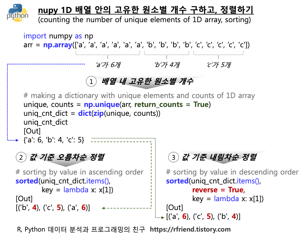 - indptr 은 저는 처음에 봤을 때는 이게 뭔가하고 유심히 보면서 좀 고민을 했습니다. ^^; indptr은 행을 기준으로 했을 때 행별로 '0'이 아닌 원소가 처음 시작하는 위치의 배열입니다. 말로 설명하기 좀 어려운데요, 가령 위의 NumPy 배열 'arr'의 '0'이 아닌 원소의 위치 (행 row, 열 col) 배열(위 그림의 중간에 표시되어 있음)을 보면,