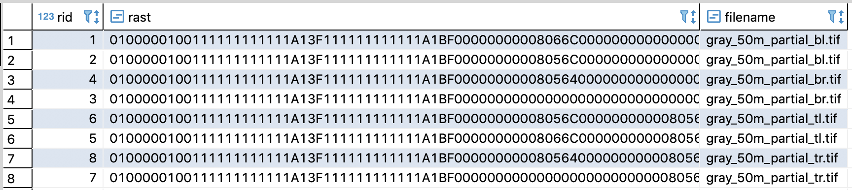 -- | denotes alternation (either of two alternatives). -- Parentheses () can be used to group items into a single logical item. SELECT 'abc' SIMILAR TO '%(b|d)%'; -- true SELECT 'abc' SIMILAR TO '%(d|e)%'; -- false -- {m} denotes repetition of the previous item exactly m times. SELECT 'abbbc' SIMILAR TO '%b{3}%'; -- true SELECT 'abbbc' SIMILAR TO '%b{4}%'; -- false -- {m,} denotes repetition of the previous item m or more times. SELECT 'abbbc' SIMILAR TO '%b{2,}%'; -- true SELECT 'abbbc' SIMILAR TO '%b{4,}%'; -- false -- {m,n} denotes repetition of the previous item at least m and not more than n times. SELECT 'abbbc' SIMILAR TO '%b{2,3}%'; -- true