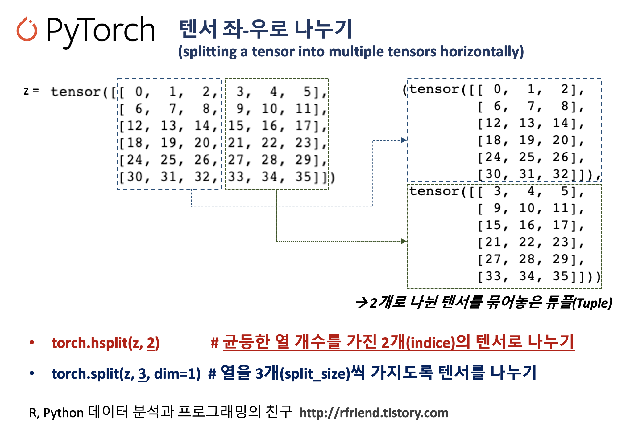 (2) 하나의 PyTorch 텐서를 좌-우의 복수 개의 텐서로 나누기